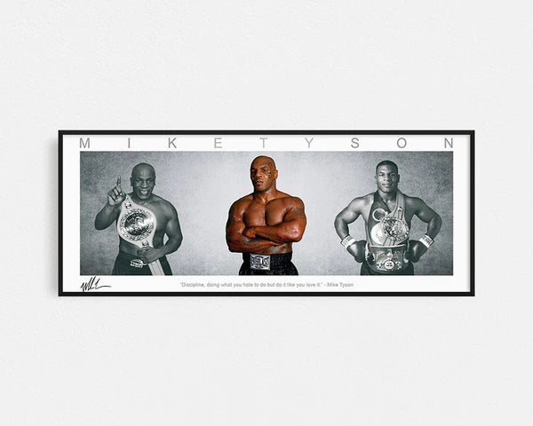This exclusive panoramic collage print captures the legendary career of Mike Tyson with a dynamic blend of iconic moments. Signed by Tyson himself and professionally framed with distinctive "Wings" design elements, this collectible piece is perfect for discerning fans and sports memorabilia collectors seeking a unique showcase of boxing history. Its high-quality print and expert framing ensure durability and striking display appeal.